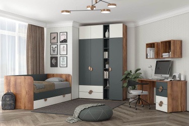 Тризиль Детская 476.04 Шкаф 1 дв. с ящ./Дуб Барокко/зел.камень