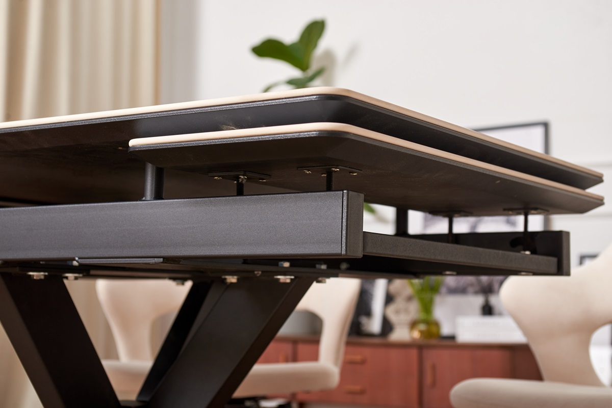 - Прочные и надежные материалы: столешница стола выполнена из керамогранита, который славится своей прочностью и долговечностью. Этот материал не выцветает и не впитывает жидкости.