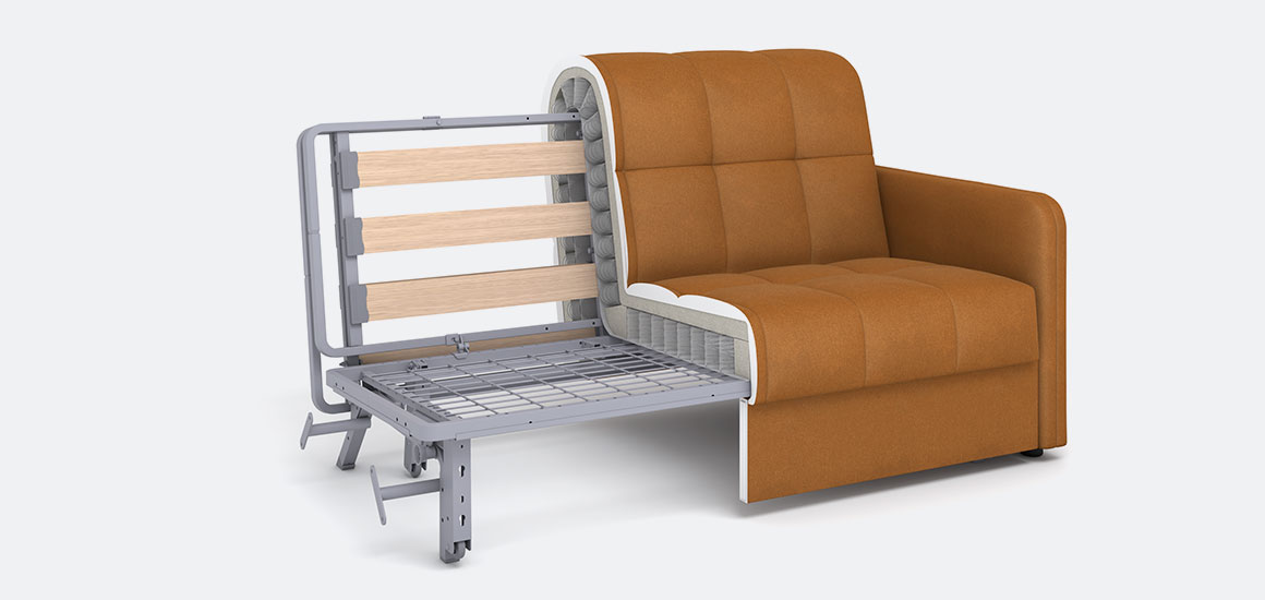 3-х зонное основание (ламели + металлическая сетка) создает ровное спальное место, подходящее для ежедневного использования. Выбор матраса: «Суперкомфорт» (пружины+ППУ) или «Комфорт» (ППУ).