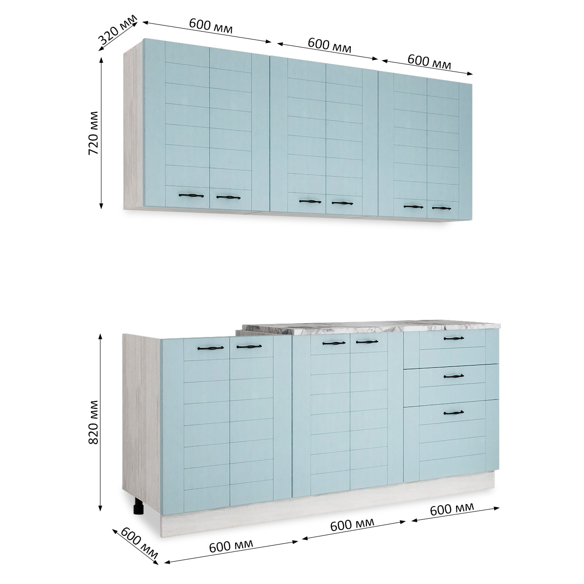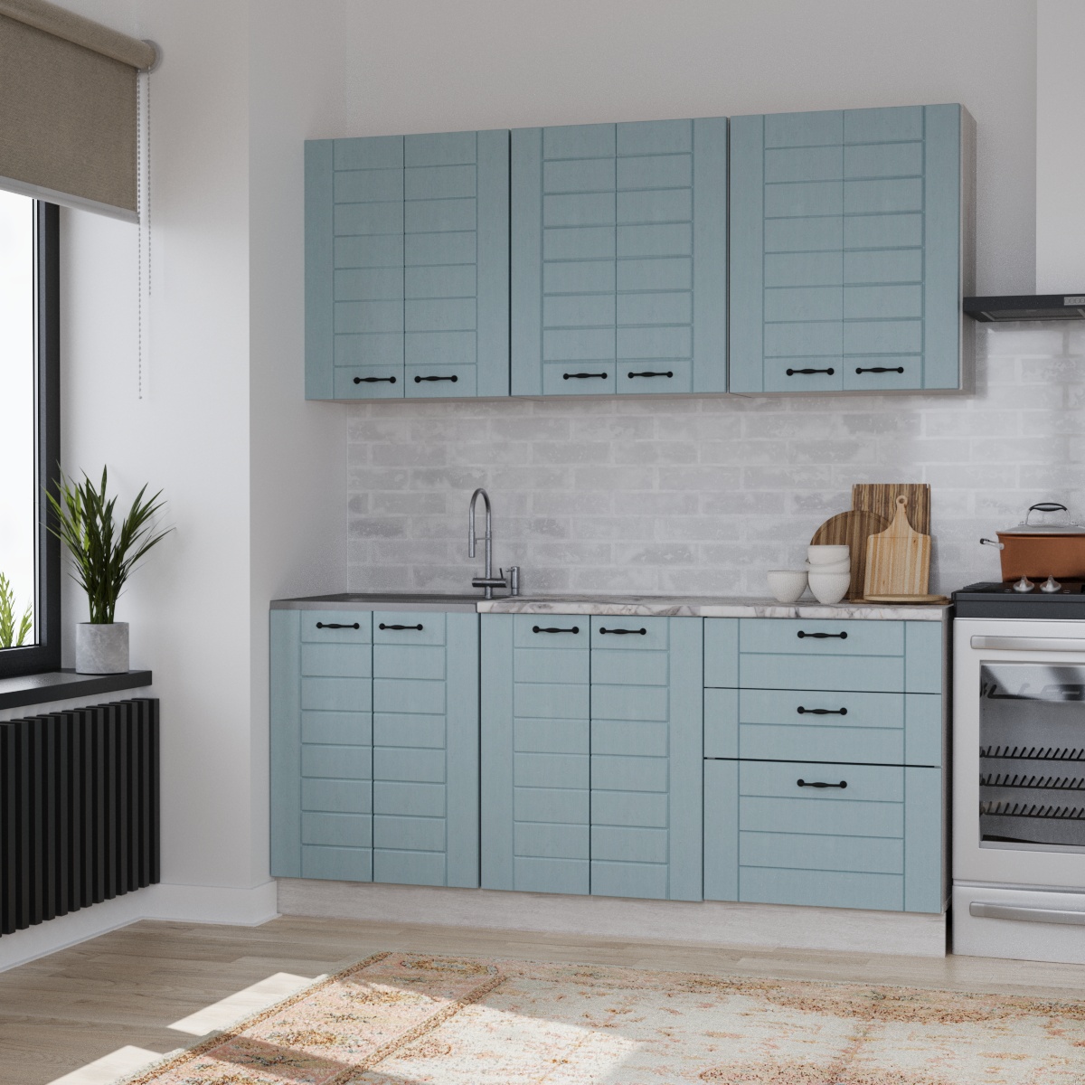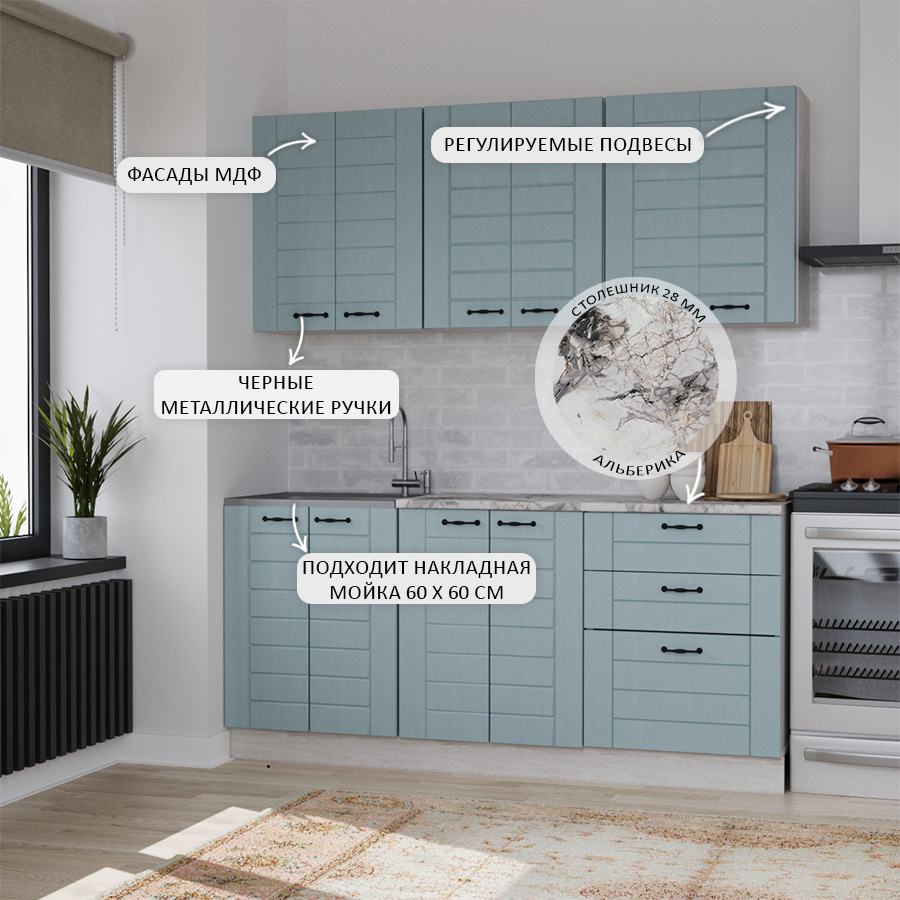 —Кухня СОНЕТ 1,8 м Сосна ЛОФТ / Дуб БИРЮЗА (столешница Альберика+Планка)