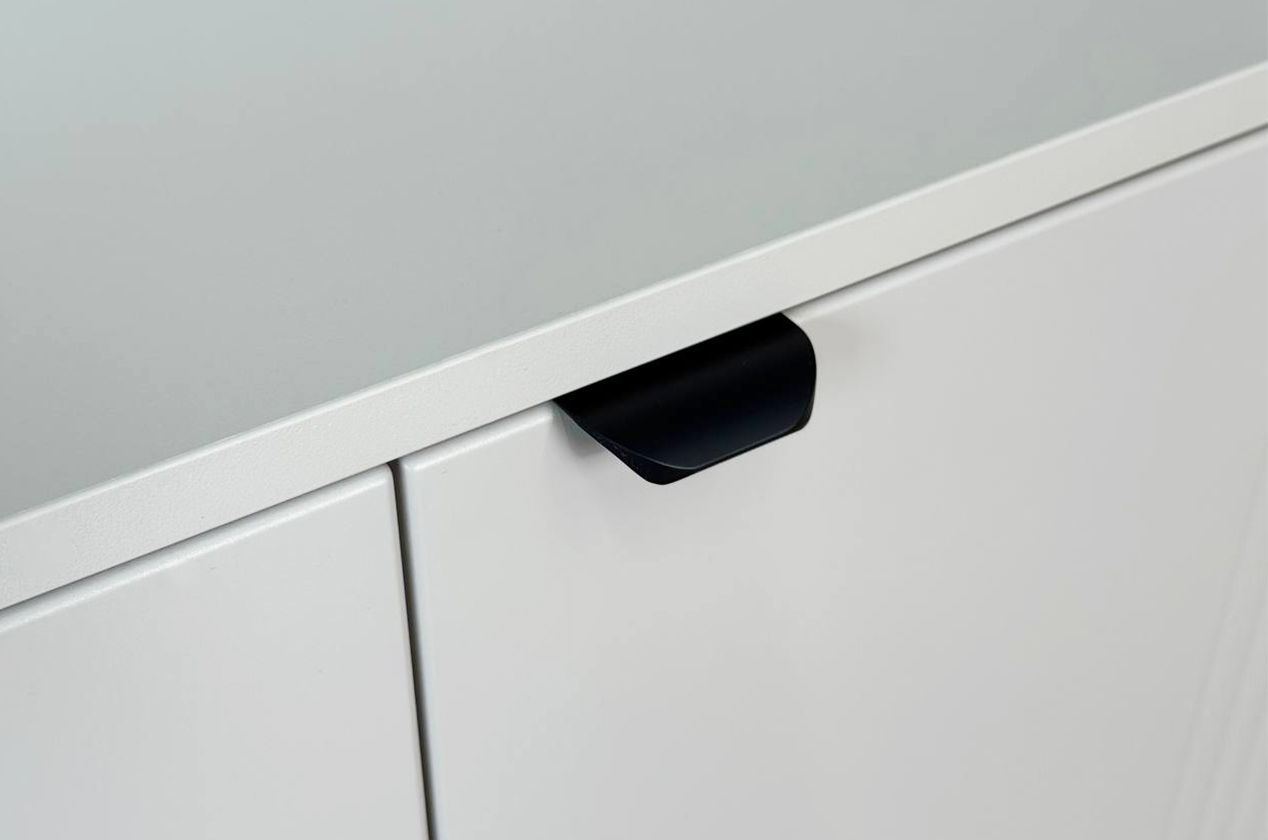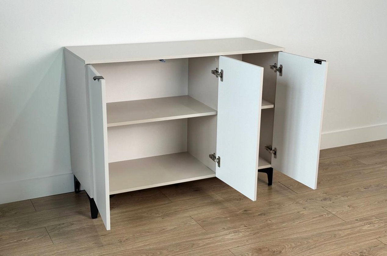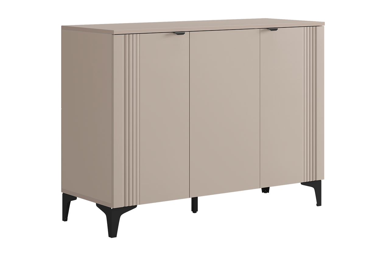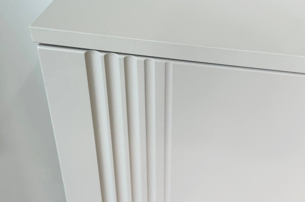 • • Элегантный дизайн: Фрезерованные фасады из МДФ придают комоду рельефность и изысканный вид, делая его полноценным элементом декора.
