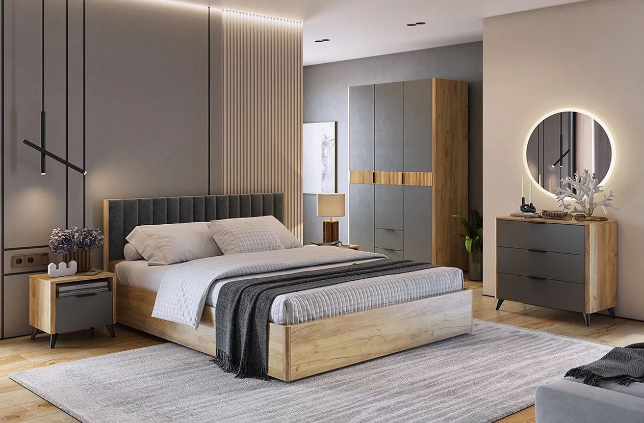Кровать Адам с подъемным механизмом (160х200) — мягкое изголовье, дуб крафт золотой/графит серый