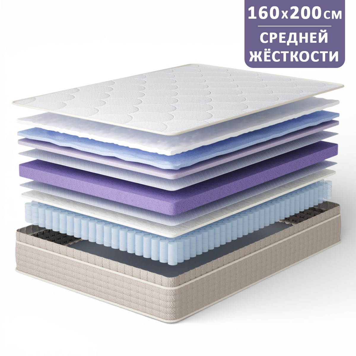 • ✓ Гигиена и долговечность: Натуральные компоненты, укрепляющие прослойки и противоскользящее основание делают матрас надежным вложением на годы.