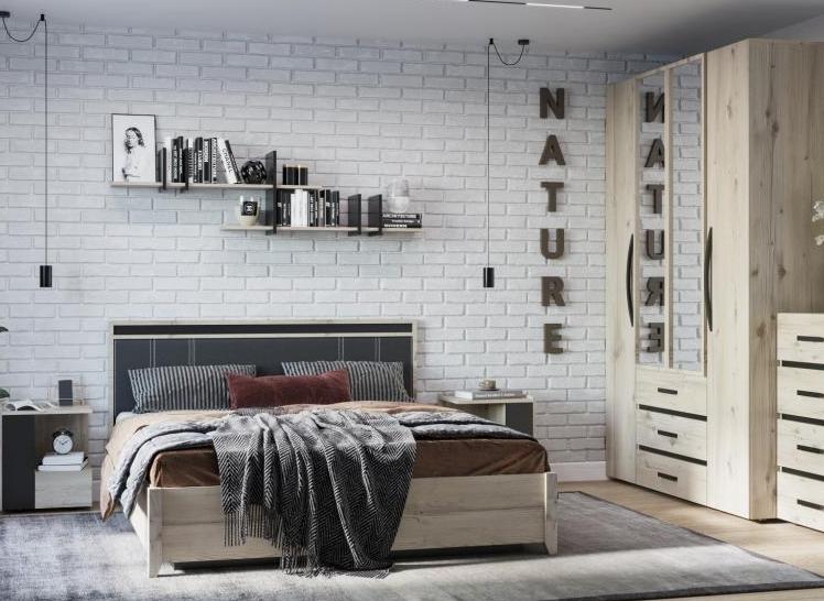 Nature 307 Кровать Люкс 1600*2000 + основание универсальное Металл/Гаскон Пайн-Черный