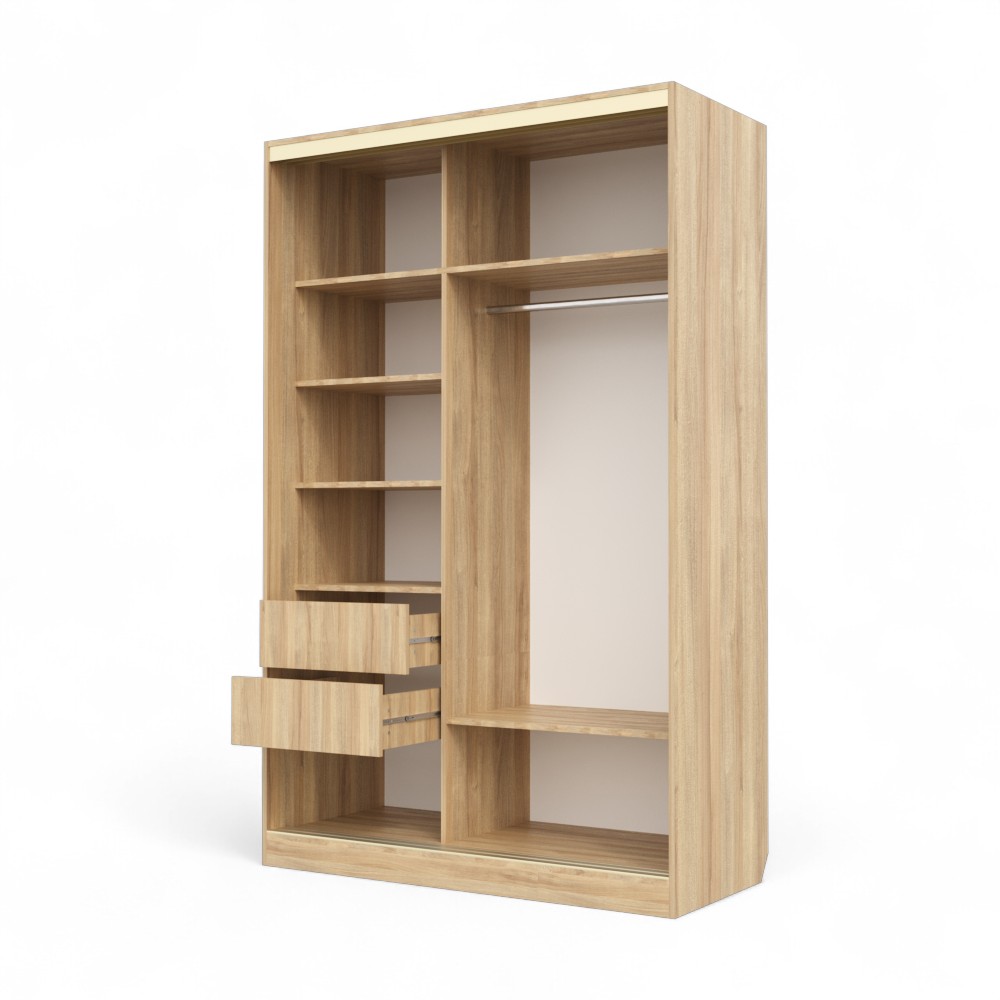 Внутри шкафа вас ждут два удобных выдвижных ящика и вместительная штанга для одежды.