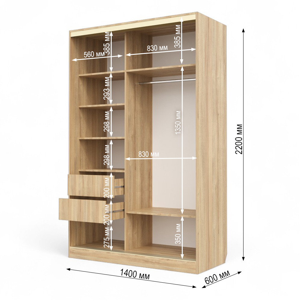 Шкаф-купе Клэр 1400х597х2200 с ящ/дуб сонома-золото